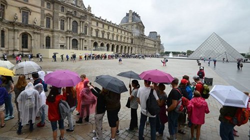 Du khách xếp hàng vào bảo tàng Louvre. (Ảnh: AFP)
