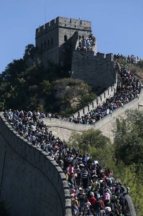 Đám đông du khách trên Vạn Lý Trường Thành. Hàng trăm triệu du khách Trung Quốc đã đổ về các di tích lịch sử, danh lam thắng cảnh, khu resort… trên khắp cả nước. Ngoài ra, cũng có hàng triệu người từ các vùng miền đổ về Bắc Kinh để được thăm quan thủ đô.