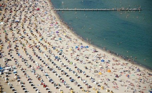 Bãi biển này tuy đông đúc nhưng khá trật tự, mọi người dựng dù nằm tắm nắng ngay hàng thẳng lối.