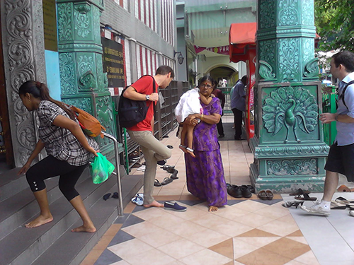 1. Hãy cởi giầy của bạn và để ngoài khi bạn vào một đền thờ, thánh điện, đền hay vào nhà của người Malaysia.
