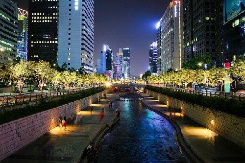 Cheonggyecheon là con suối dài gần 6 km chảy giữa trung tâm thủ đô Seoul của Hàn Quốc. Ban đầu, nơi đây chỉ là con suối không tên và từng bị chôn lấp dưới lớp bê tông suốt 47 năm trong giai đoạn thành phố đang phát triển. Tuy nhiên, khi những tòa nhà cao tầng mọc lên như nấm bao phủ khắp Seoul, người dân lại muốn tìm một nơi nào đó thoáng đãng để hít thở, đi dạo và thư giãn. Đó chính là lý do Cheonggyecheon được khôi phục và trở lại đầy sức sống, khoe dòng nước mát trong chảy qua khu vực quảng trường Cheonggye, đường Sejongro, quận Jongno Gu. Đối với người Hàn Quốc, suối chính là "linh hồn" của thủ đô.