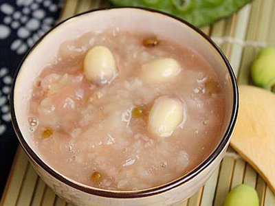 Bài 7: Kê 50g, lạc 50g, đậu đỏ 30g, đường phèn lượng vừa đủ. Cho kê, lạc và đậu đỏ ngâm cho nở, sau đó rửa sạch. Cho lạc và đậu đỏ vào nồi cùng lượng nước vừa đủ, đun lửa to cho sôi, rồi chuyển lửa nhỏ trong 30 phút. Sau đó cho kê vào đun cùng tới khi chín nhừ, thêm đường phèn nêm vừa miệng.