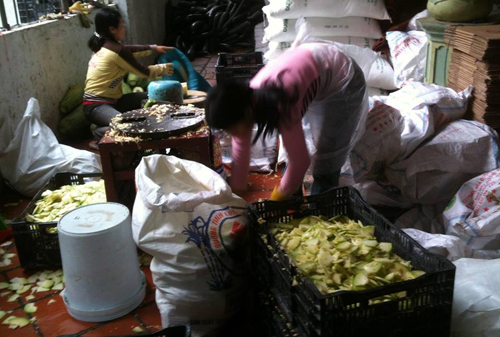 Theo chị H., mấy năm nay, hàng Trung Quốc tràn về Việt Nam nhiều nên nhiều cơ sở sản xuất không chạy đua theo kiểu bán mứt nhỏ lẻ, mà chuyển sang bán buôn cho các đại lý có nhu cầu. Cơ sở của chị H. đông khách đặt hàng đến nỗi chị phải huy động cả anh em, họ hàng làm trong đêm. Chị H. cho hay, ban ngày nhà chị có khoảng 20 nhân công mới đáp ứng được nhu cầu hàng cho các đại lý ở Ninh Bình, Hải Dương, Bắc Giang... Mỗi tỉnh ấy, chị H. đều có mối trung gian giao hàng từ năm trước. Vì thế, việc thỏa thuận tiền phần trăm, tiền chi thêm khi đại lý lấy nhiều hàng được hai bên thỏa thuận rất nhanh.