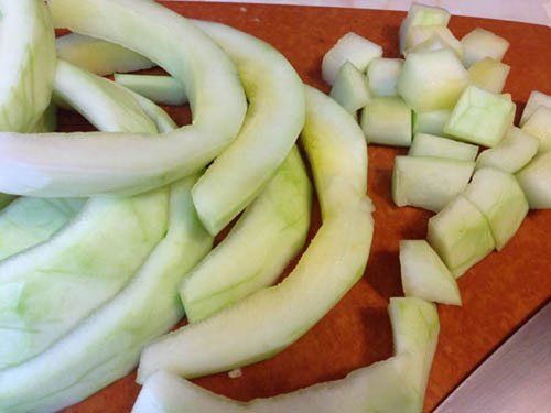 Vỏ dưa hấu cứng, vì vậy mà không nhiều người nghĩ đến chuyện ăn vỏ quả dưa hấu. Dù không ngọt, nhưng vỏ quả dưa hấu rất giòn và chỉ cần thêm một chút đường là bạn có thể ăn nó dễ dàng. Trên thực tế lớp vỏ trắng của dưa hấu có chứa rất nhiều các hợp chất tốt cho sức khỏe gồm vitamin C, beta carotene, vitamin A, thiamin, lycopene, canxi, kẽm và sắt.