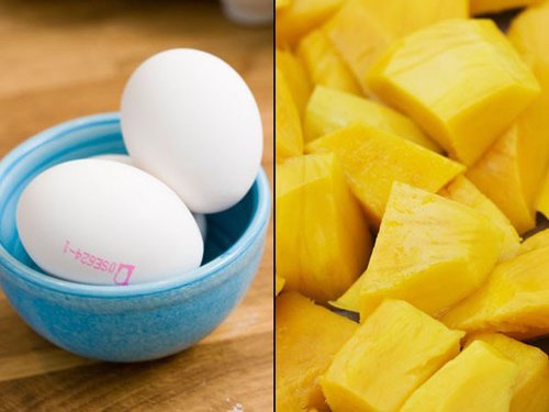 Xoài rất giàu vitamin C có tác dụng thúc đẩy sản xuất collagen, giúp da khỏe mạnh. Còn trứng cần thiết cho sự hình thành và phát triển các tế bào da. Kết hợp trứng và xoài là kết hợp hoàn hảo cho một làn da đẹp.