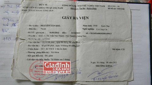 Giấy xuất viện kết luận bệnh ung thư gan của ông Khả thuyên giảm rất nhiều. Ảnh: Nhân vật cung cấp