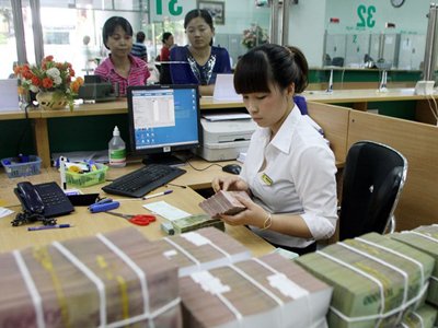 Làm thủ tục cho khách hàng vay vốn tại Ngân hàng Ngoại thương Việt Nam (ảnh tư liệu). (Ảnh: Trần Việt/TTXVN)