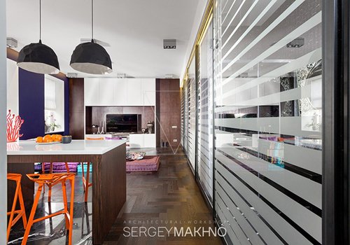 Không gian nhà nhìn từ khu bếp. Do có 3 cửa sổ lớn và các cửa kính ngăn phòng nhỏ nên bất cứ ở đâu trong nhà cũng có thể tiếp cận ánh sáng tự nhiên.