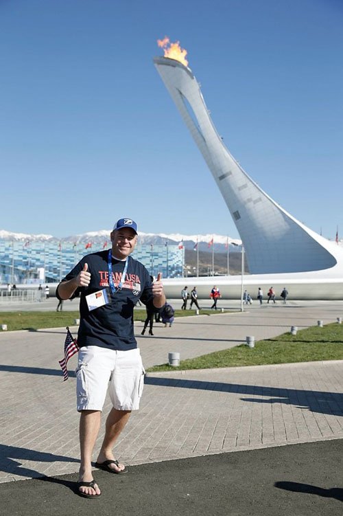 Một cổ động viên người Mỹ chụp ảnh lưu niệm bên cạnh ngọn đuốc của Olympic Sochi 2014. (Nguồn: Getty)