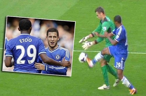 Samuel Eto'o đã cướp bóng khi thủ môn David Marshall đập xuống mặt cỏ. Chính từ tình huống này, Eden Hazard gỡ hòa cho đội bóng thành London.