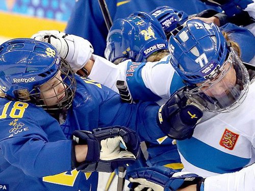 * Olympic Sochi 2014 đã phải chứng kiến cảnh tượng không hay ho chút nào khi các nữ vận động viên của hai đội tuyển hockey Phần Lan và Thụy Điển lao vào đánh nhau.