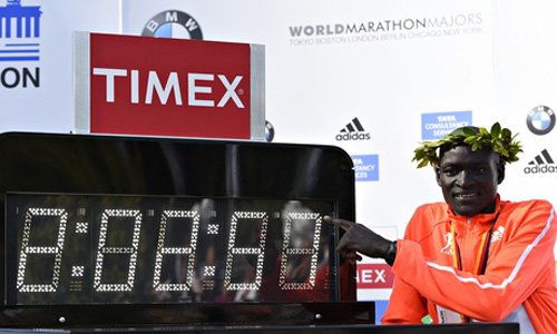 Ở 20km cuối, VĐV 30 tuổi bứt lên cùng tốp dẫn đầu bao gồm 7 VĐV khác trong đó có cả 2 người đồng hương Emmanuel Mutai và Geoffrey Kamworor. Khi chỉ còn cách vạch đích 4km, Kimetto bất ngờ vượt lên trên để cán đích đầu tiên, trở thành VĐV điền kinh nam đầu tiên trong lịch sử hoàn tất chặng marathon với thời gian ít hơn 2 giờ 3 phút.