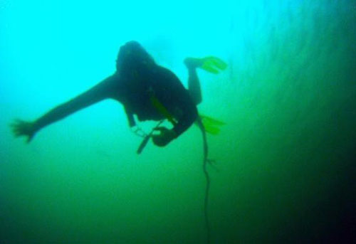 Người thợ chuẩn bị lặn xuống dưới hồ để kiểm tra các lồng nuôi cá tại một trang trại cá hồi của công ty Huon Aquaculture Group ở vịnh Hideaway, Tasmania.
