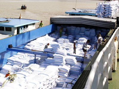 Công ty lương thực Sông Hậu thành phố Cần Thơ xuất khẩu gạo. (Ảnh: Đình Huệ/TTXVN)