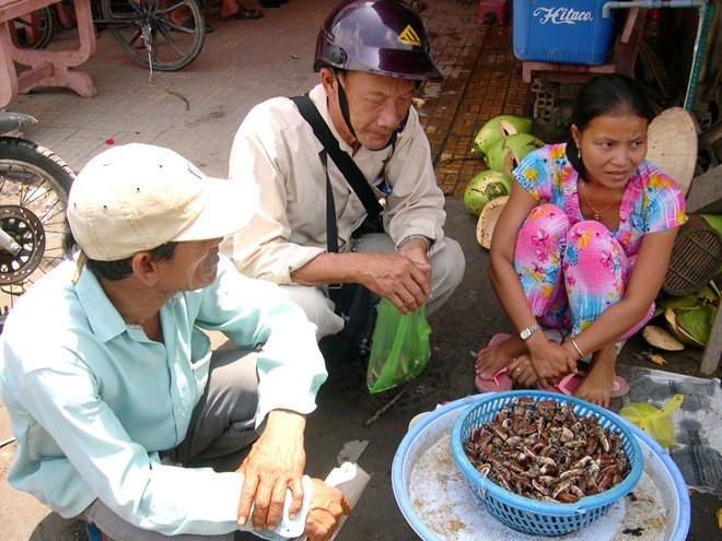 Bò cạp ở đây được bán với giá 4.000-5.000 đồng/con tùy kích cỡ.