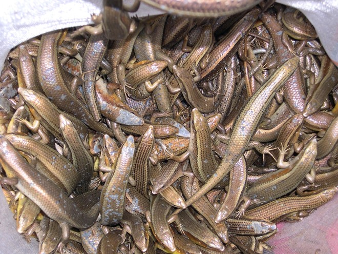 Theo ông T.V ở xã Vĩnh Trung – Tịnh Biên, vào mùa cao điểm, có ngày ông làm 30-50 con tắc kè phơi khô, để bỏ mối lại cho tiểu thương ở chợ Tịnh Biên, với giá 45.000 đồng/con.