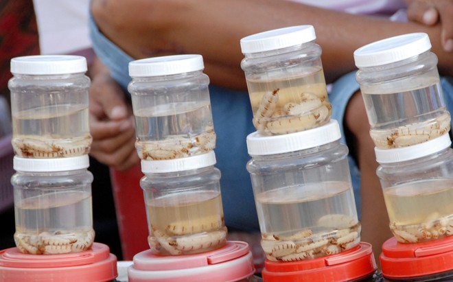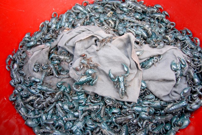Côn trùng ở đây được bán dưới nhiều hình thức, tươi sống, ngâm rượu, chế biến thành món ăn… Và món nào cũng kèm theo lời rao: Bổ thận, cường dương, khôi phục bản lĩnh đàn ông...