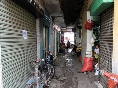 Chỉ có một vài sạp mở cửa buôn bán, các sạp khác chủ yếu làm kho chứa đồ.