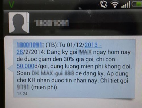 Tin nhắn khuyến mại từ nhà mạng.