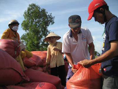Anh Trần Văn Oanh - một thương lái ở xã Huyền Hội cho biết: “Sở dĩ giá lúa giảm sâu mấy ngày qua, một phần là do ảnh hưởng của mưa bão vào thời điểm bà con nông dân thu hoạch rộ; mặt khác là do thị trường xuất khẩu hiện đang chững? lại nên đã làm tác động đến giá lúa. Với đà này, giá lúa những ngày tới đây sẽ tiếp tục đi xuống”.