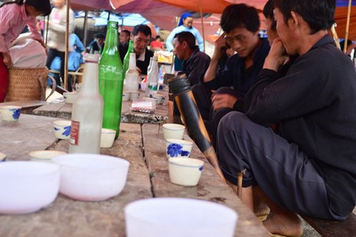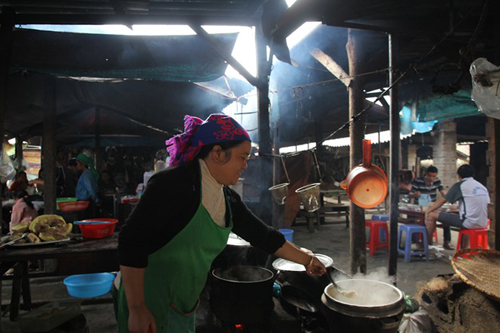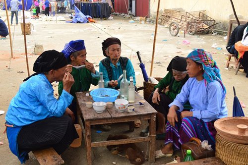 Chị Già, một người bán rượu ở đây, chỉ trong buổi chợ phiền từ 5h sáng đến 12h trưa là bình rượu 50 - 60 lít của chị trống trơn. Chỉ vài tiếng bán rượu buổi sáng, chị Già có lời khoảng 500.000 đồng. Theo câu chuyện của chị Già, trước kia chị có bán thịt lợn đen, nhưng lời lãi không nhiều, thường xuyên bị ế và hỏng do không biết cách bảo quản. Ngược lại, bán rượu rất chạy, lại nhàn nhã. Cả phiên chợ, chị Già chỉ ngồi đong rượu bán mà vừa có thể chăm 3 đứa con nhỏ.