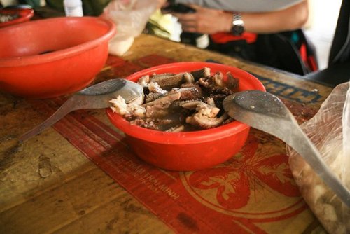 Anh Phìn, một người bán thắng tại chợ Đồng Văn cho biết: "Sáng nào tôi cũng bán từ 8h sáng đến 10h30 là hết sạch 2 nồi khoảng hơn 1 tạ. Tính giá 15.000 đồng/lạng, tôi được 1,5 triệu đồng".