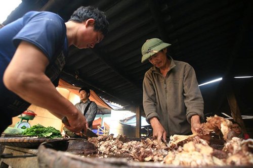 Trên các bàn rượu của những người ở đây là thắng cố - một món ăn đặc biệt có một không hai ở các vùng núi Tây Bắc.