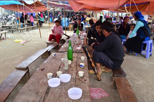 Rượu là một trong những mặt hàng không thể thiếu ở các phiên chợ vùng cao. Tại một chợ phiên ở Mèo Vạc có hẳn khu khoảng hơn 10 quầy hàng bán rượu. Rượu ở đây thường được bán giá 50.000 đồng/lít và không bán kèm đồ ăn.