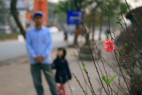 Vào những ngày này, dọc khu vực đường Lạc Long Quân (Tây Hồ, Hà Nội) không khó để bắt gặp sắc thắm hoa đào đang nở rộ báo hiệu Tết đến xuân về.