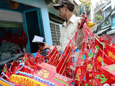 Tại xóm lồng đèn truyền thống Phú Bình (quận 11), năm nay xu hướng sản xuất lồng đèn hình chiếc thuyền có in dòng chữ Trường Sa, Hoàng Sa lên ngôi.