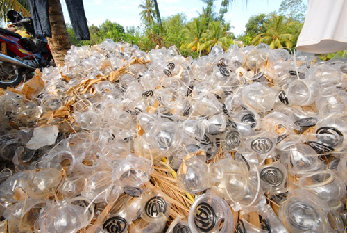 Để làm bưởi hồ lô phục vụ thị trưòng Tết, ngoài chăm cây khỏe, ra trái đều, nhà vườn sẽ chọn những trái đẹp, không tì vết để đưa vào khuôn ép thành hình hồ lô.Khuôn “nặn” hình hô lô giá bán từ 25.000 -30.000 đồng/cái tùy vào chất liệu.