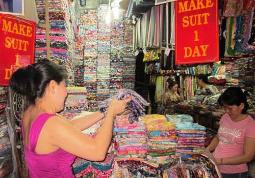 Thay vì chỉ bán vải như các chợ lẻ khác ở TP HCM, các sạp vải ở chợ Bến Thành còn nhận may luôn cho khách và giao hàng chỉ trong vòng một ngày. Chị Ngọc Giàu, chủ sạp cho hay, đây là cách giúp khách ngoại quốc tiết kiệm được thời gian và có được sản phẩm ưng ý. Giá may sản phẩm ở đây từ vài trăm nghìn cho đến vài triệu đồng. Sạp cũng đã được lưu truyền hai đời.