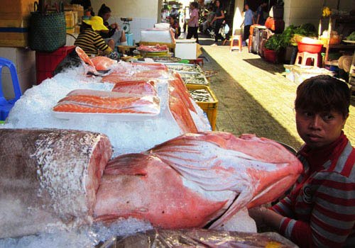 Thủy hải sản ở chợ này cũng đặc biệt hơn so với các chợ khác ở TP HCM. Các gian hàng được trưng bày khá bắt mắt, nhiều loại cá có trọng lượng rất lớn tới vài chục kg. Theo tiểu thương, các loại cá lớn này được nhập từ Phan Thiết, chủ yếu dùng để bán cho các nhà hàng và quán ăn lớn.