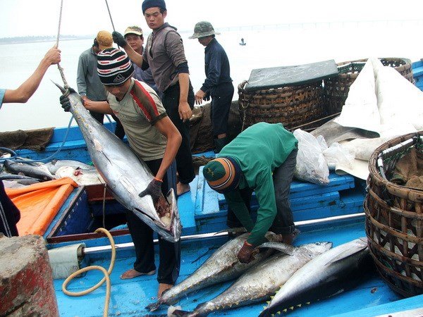 Ngư dân thành phố Tuy Hòa, Phú Yên khai thác cá ngừ đại dương. (Ảnh: Thế Lập/TTXVN)