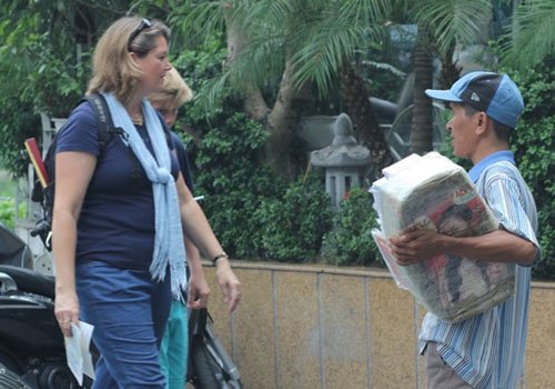 Nhiều khách hàng nước ngoài cũng mua thuốc lá lậu trên phố Lê Thái Tổ. (Ảnh: Minh Sơn/Vietnam+)