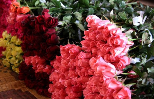 Hoa được thương lái Trung Quốc thu mua để phục vụ thị trường Valentine nên tập trung chủ yếu vào các loại hồng đỏ, hồng phấn, hồng trắng và hồng cam với mức giá dao động từ 2.000-5.000 đồng/bông tùy loại.