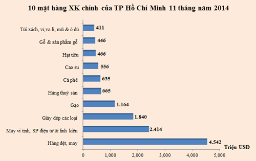 10 mặt hàng XK chính của TP Hồ Chí Minh 11 tháng năm 2014