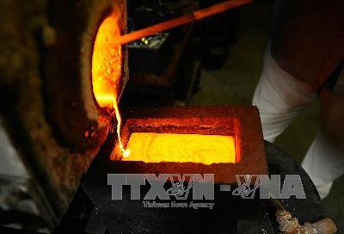 Sản xuất vàng thỏi tại Los Angeles, California (Mỹ). (Ảnh: AFP/TTXVN)