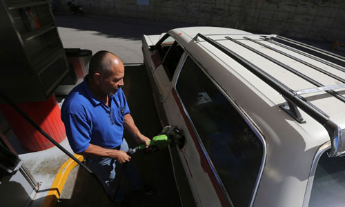 Henry Duran, một người dân Venezuela đang đổ đầy xăng cho chiếc Ford LTD Ranger sản xuất năm 1978 tại Caracas, Venezuela. Ảnh: AP