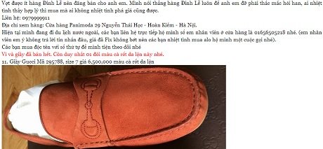 Ghi nhận tại diễn dàn hàng hiệu, có thể nhận thấy hàng loạt lời rao bán các sản phẩm dây lưng, giày, ví…có xuất xứ từ lô hàng hiệu thanh lý giá bèo ở 13 Đinh Lễ.