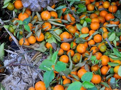 Quả quất chín vàng đã bị chết héo khô nằm chất đống ở ven đường khi đến làng Tứ Liên vào những ngày này. (Ảnh Dân Việt)