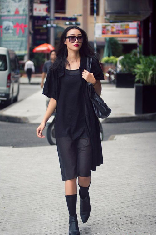 Trang Nhung lại lựa chọn tông đen của blazer để phù hợp với cả cây đen nhã nhặn.