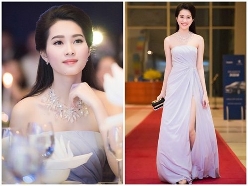 Tham dự một sự kiện tại Hà Nội, hoa hậu Đặng Thu Thảo trở thành điểm nhấn nổi bật nhờ hình tượng thanh lịch, duyên dáng. Bộ váy dạ hội tông màu tím pastel xẻ cao, khoe vai trần tinh tế của NTK Lê Thanh Hoà phù hợp với phong thái nhẹ nhàng, giúp Hoa hậu Việt nam 2012 giữ vững phong độ hình ảnh. Tông trang điểm màu nude nền nã cũng mang đến nét mộc mạc mà không kém phần thu hút.
