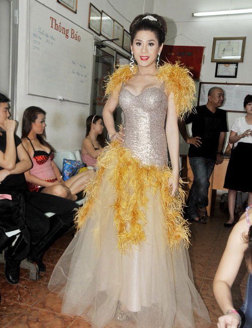 Lâm Chi Khanh luôn chọn những màu sắc nổi bật để làm trội lên tính “nữ” của mình. Đầm hồng gắn đá cùng kiểu tóc búi khá “hai lúa”. Hay bộ đầm màu cam kiểu công chúa sẽ đẹp hơn nếu không có chiếc băng đô “lông chim”.