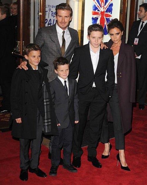 Ba quý tử nhà Becks gồm Brooklyn, Romeo và Cruz tỏ ra rất chuyên nghiệp khi tạo dáng trước ống kính. Dù ít tuổi nhưng ba cậu nhóc đã học được thói quen ăn vận lịch sự khi cùng cha mẹ xuất hiện tại các sự kiện văn hóa - giải trí lớn nhỏ.