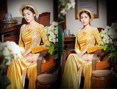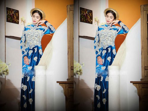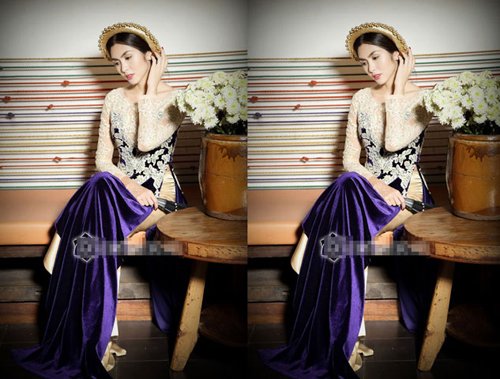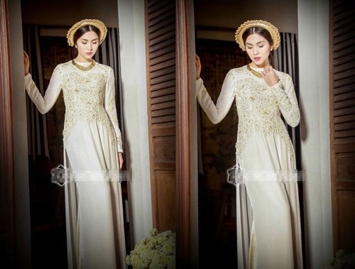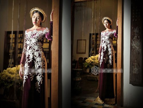 Hà Tăng diện bộ áo dài quyền quý cùng với gương mặt kiêu sa, Hà Tăng càng khiến cho nết kiêu sa quyền quý của mình được thể hiện.
