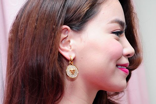 Bộ hoa tai dáng tròn mix ăn ý trang phục và dàn phụ kiện đồng nhãn hàng.