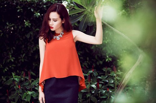 Trong bộ ảnh mới, Lưu Hương Giang mix chân váy bút chì với áo suông đỏ cá tính. Tuy kín đáo nhưng nữ ca sĩ trông vẫn rất gợi cảm ở tuổi 31.Chỉn chu váy áo mỗi khi xuất hiện, bà xã Hồ Hoài Anh để lại nhiều ấn tượng với khán giả bởi gout thời trang quyến rũ.