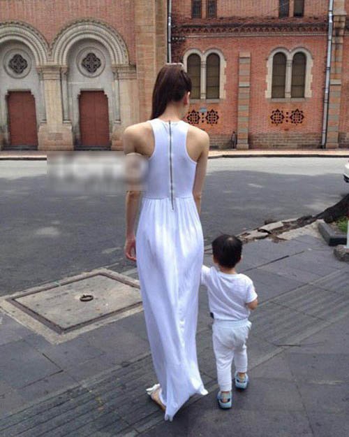 Hà Hồ diện váy trắng thướt tha, dẫn Subeo đi dạo phố. Hai mẹ con nữ ca sĩ có vẻ rất chuộng trang phục tông màu trắng.