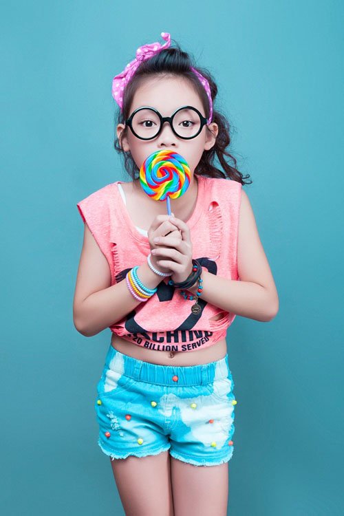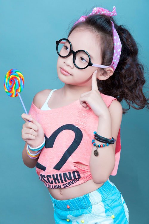 Nhóc tỳ 10 tuổi nhí nhảnh chu môi, uốn cong mình làm dáng tinh nghịch.